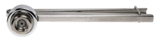 Die Bördelhöhe stellt man mit dem mitgelieferten Inbusschlüssel ein. Dazu hält man den Bördelkopf fest und steckt den Inbusschlüssel in die im Bördelkopf vorgesehene Aufnahme.