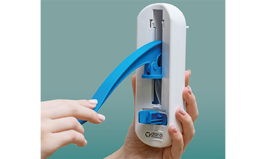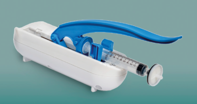 Le levier est robuste et permet d'appliquer une puissance importante en un instant pour mettre en mouvement le mécanisme. La longueur du levier permet d'utiliser la force de toute la main et non seulement celle du pouce, comme c'est le cas avec une seringue.